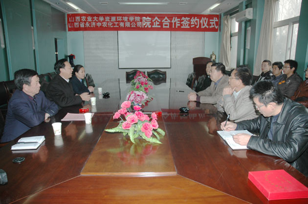 ?? ?2月29日,中農(nóng)控股旗下永濟中農(nóng)化工有限公司(以下簡稱“永濟中農(nóng)”)與山西農(nóng)業(yè)大學(xué)院企合作簽約儀式在山西農(nóng)業(yè)大學(xué)二樓會議室舉行。永濟中農(nóng)總經(jīng)理劉乃倉、山西農(nóng)業(yè)大學(xué)資源環(huán)境學(xué)院院長洪堅平、學(xué)院總支書記馬建平、學(xué)院副院長卜玉山等參加簽約儀式。