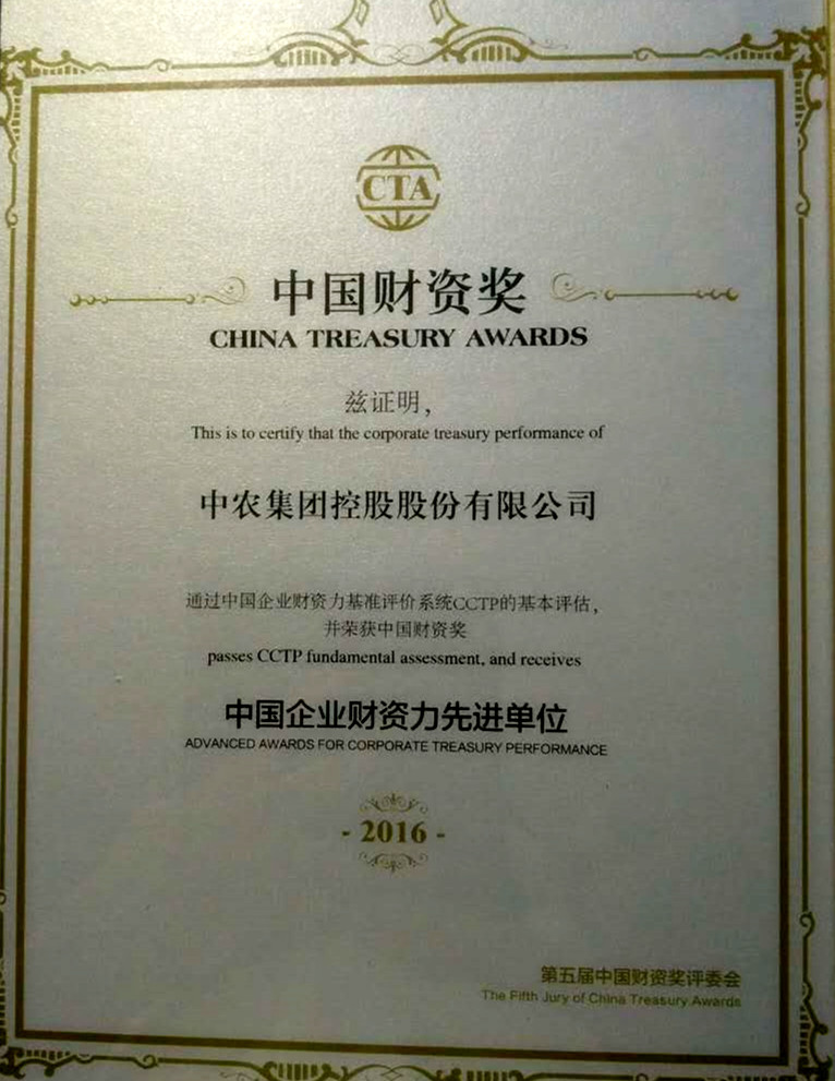 ? ? 中農(nóng)控股通過中國(guó)企業(yè)財(cái)資力基準(zhǔn)評(píng)價(jià)系統(tǒng)CCTP的基礎(chǔ)評(píng)估,在眾多企業(yè)當(dāng)中脫穎而出,憑借綜合融資能力和企業(yè)的流動(dòng)性管理能力等財(cái)資力方面所取得的成績(jī),獲得首批企業(yè)財(cái)資力先進(jìn)單位。全國(guó)共有37家企業(yè)獲得此項(xiàng)殊榮。