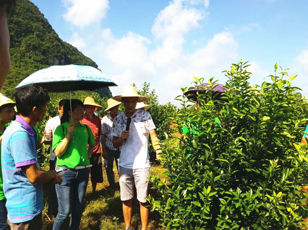 ? ? 7月30日,“海元寶”復(fù)合肥農(nóng)化服務(wù)團(tuán)隊(duì)在廣西大新縣雷平鎮(zhèn)逐內(nèi)村組織召開柑桔現(xiàn)場(chǎng)觀摩會(huì)。觀摩會(huì)吸引了150多名種植戶參加,周邊廣大農(nóng)民朋友都想通過(guò)觀摩“海元寶”復(fù)合肥柑桔示范田,學(xué)習(xí)到更好的柑桔種植技術(shù)。