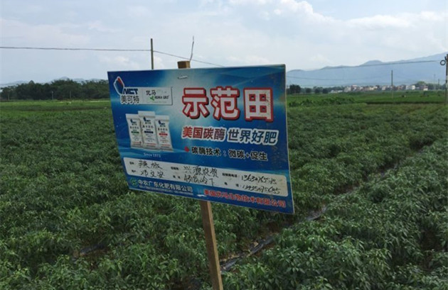 ? ? ? ?廣東中農(nóng)農(nóng)化服務(wù)團(tuán)隊(duì)在粵北客戶經(jīng)理曾雄彬的帶領(lǐng)下來(lái)到了始興縣頓崗鎮(zhèn)嶺下村。在辣椒示范種植戶陳阿姨的地塊,對(duì)比田的辣椒地水災(zāi)后出現(xiàn)葉黃、根部腐爛發(fā)黑、桿莖枯死的現(xiàn)象,成塊地都是殘枝敗葉。據(jù)陳阿姨介紹,當(dāng)時(shí),她第一時(shí)間想到使用殺菌、促根的藥水,但是還是不能阻止辣椒樹(shù)的枯死;但同時(shí)使用了“美可特”碳酶肥的辣椒示范田,辣椒長(zhǎng)勢(shì)非常旺盛,葉片深綠,花團(tuán)錦簇,辣椒樹(shù)上掛滿了小辣椒。廣東中農(nóng)農(nóng)化服務(wù)團(tuán)隊(duì)聽(tīng)了陳阿姨的介紹,對(duì)示范田辣椒的后續(xù)管理提出了具體施肥方案,并解釋了“美可特”碳酶復(fù)合肥微碳和促生的作用機(jī)理,以及其在抗?jié)?、抗旱、抗病等抗逆性方面的突出效果?,F(xiàn)場(chǎng),農(nóng)化服務(wù)人員督促陳阿姨繼續(xù)用16-6-22高鉀型的“美可特”碳酶復(fù)合肥作為追施肥,為后期的豐產(chǎn)打下基礎(chǔ)。