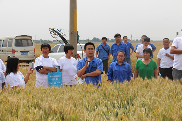 ? ? 與會人員首先來到新樂中農(nóng)農(nóng)業(yè)技術推廣示范點,觀摩了小麥施用“欣碩”FA因子功能肥料情況。隨后,新樂中農(nóng)召開了新肥料示范推廣現(xiàn)場培訓會,介紹了“欣碩”FA因子功能肥料的功效及施用方法,重點推介了“欣碩”FA因子功能型肥料促進根系生長,增加作物的抗逆性能、抗寒力、抗干熱風以及抗病蟲害等多方面的突出功效。河北省農(nóng)科院小麥專家楊立華說:“今年全國的小麥赤霉病比較嚴重,而施用FA因子肥料的小麥,幾乎沒有赤霉病,這說明FA肥料有很好的抗病效果,這也為高產(chǎn)打下了基礎,也是增產(chǎn)的保證?!庇^摩會現(xiàn)場,使用“欣碩”FA因子功能型肥料的種植戶向前來觀摩的參會人員講述了施用“欣碩”FA因子功能肥料過程中的注意事項,分享了種植管理過程中的施肥經(jīng)驗。期間,大家互動頻繁,氣氛熱烈,顯示出對新樂中農(nóng)技術與產(chǎn)品的極大認可。