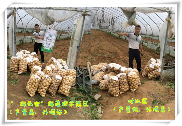? ? 據基地負責人介紹,今年開春持續(xù)陰雨天氣,馬鈴薯種植基地積水嚴重,加之氣溫忽冷忽熱,導致馬鈴薯出現(xiàn)大面積死苗,但使用“海元寶”海藻肥種植的馬鈴薯死苗明顯少于對比田。中農控股農化人員比較兩個相鄰的馬鈴薯種植大棚,其中一個大棚施用“海元寶”海藻肥,另一個施用其他品牌肥料。中農控股農化人員隨機抽取相同面積的地塊,從植株生長情況上看,施用“海元寶”海藻肥的馬鈴薯苗情顯著高于對比區(qū)。從外觀上看,施用“海元寶”海藻肥的馬鈴薯表皮光滑白嫩,對比區(qū)馬鈴薯則麻點多且皺皮。之所以出現(xiàn)這種情況,中農控股農化人員介紹說,“海元寶”海藻肥含有酚類多聚化合物,具有顯著的抗?jié)场⒖购?、抗旱和抗鹽堿等抗逆性,含有的甜菜堿和碘能有效抑制和殺滅病菌,提高作物的免疫力?;刎撠熑寺犃宿r化人員的講解恍然大悟,原來是“海元寶”海藻肥優(yōu)異的抗逆性將水澇災害造成的損失降到了最低。