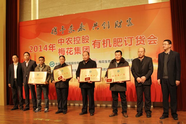 ? ? 近日,由公司與梅花生物科技集團股份有限公司(簡稱“梅花集團”)聯(lián)合主辦的有機肥訂貨會在河北廊坊召開,來自全國20多個省市的160多位優(yōu)秀經(jīng)銷代表,以及河南、山東、內(nèi)蒙古、山西、陜西等十余家有機肥企業(yè)參加了會議。????? ? 會上,公司與梅花集團共同簽訂了“2014年戰(zhàn)略合作框架協(xié)議”。根據(jù)協(xié)議內(nèi)容,雙方將緊密結(jié)合自身條件,充分發(fā)揮各自優(yōu)勢,計劃在有機肥產(chǎn)銷領(lǐng)域開展深入合作,共同探索建立新形勢下的產(chǎn)銷一體化、渠道共享制的廠商運營模式。? ? 據(jù)了解,簽訂戰(zhàn)略協(xié)議的同時,公司與梅花集團還初步達成了25萬噸的有機肥聯(lián)銷協(xié)議,并以訂貨會的形式現(xiàn)場實現(xiàn)對外銷售。會議期間,公司與來自全國各地的100多家經(jīng)銷商簽訂了2014年有機肥區(qū)域總經(jīng)銷協(xié)議,成交合同金額達4000多萬元。