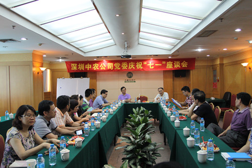? ? ? 7月1日,深圳市中農(nóng)生產(chǎn)資料有限公司(簡稱“深圳中農(nóng)”)黨委在深圳中農(nóng)大廈舉行座談會,紀念中國共產(chǎn)黨誕辰92周年。來自深圳中農(nóng)本部、各控股公司支部的黨員30余人參加座談。座談會由深圳中農(nóng)黨委委員、黨辦主任馬立鶴主持。?????座談會上,深圳中農(nóng)董事長兼總經(jīng)理肖建國與大家共同回顧了深圳中農(nóng)從黨支部組建、擴大到黨總支成立20年來的發(fā)展歷程。在談到公司黨建工作時,肖建國說,目前深圳中農(nóng)面臨著內(nèi)外部的挑戰(zhàn)和改革發(fā)展的壓力,黨組織的政治優(yōu)勢要向競爭優(yōu)勢和發(fā)展優(yōu)勢的方向轉(zhuǎn)化,不管公司管理模式發(fā)生何種變化,作為一名共產(chǎn)黨員,都應該保持堅定的政治信念,堅持黨性原則,保持共產(chǎn)黨員先進性,在日常生活中以黨員的標準嚴格要求自己。?????隨后,公司黨委、紀委成員和各支部黨員代表暢所欲言、各抒己見,分別結合各自的入黨經(jīng)歷、學習、工作和生活實踐,暢談了在黨建工作中的經(jīng)驗和體會,抒發(fā)了立足本職崗位,發(fā)揮共產(chǎn)黨員先鋒模范作用的感想,并結合業(yè)務發(fā)展提出了諸多積極建議。來自駐深農(nóng)資企業(yè)的退休黨員陳永蓮在發(fā)言中對深圳中農(nóng)黨委給予的關懷表示感謝,黨委開展的有聲有色的黨建活動讓他們充分體會到了黨組織的歸屬感和榮譽感。????最后,肖建國希望各黨支部要充分發(fā)揮組織領導作用,各黨員更要以身作則,在公司轉(zhuǎn)型之際,同舟共濟、齊心協(xié)力,發(fā)揮戰(zhàn)斗堡壘和模范作用,將每個黨員、每個員工的夢匯聚成深圳中農(nóng)的夢,更好地推動深圳中農(nóng)不斷發(fā)展。