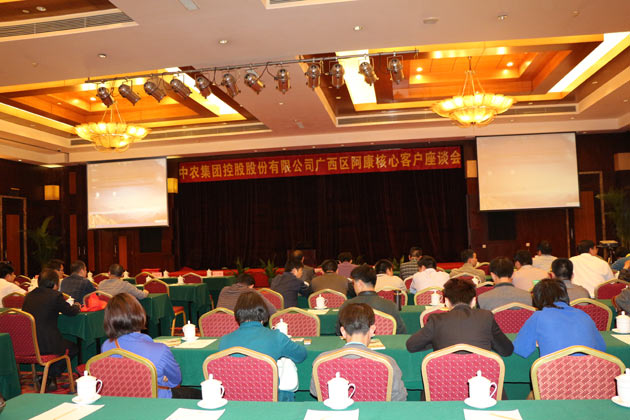 ? ? ? ?座談會上,王秦燕首先向與會的近100名區(qū)域經(jīng)銷商簡要介紹了中農(nóng)控股的總體發(fā)展情況,并就阿康進口復合肥的肥效特點做了詳細說明。同時,根據(jù)公司與阿康集團的合作計劃,中農(nóng)調(diào)運在會議現(xiàn)場公布了2013年阿康復合肥的區(qū)域營銷方案,并舉行了現(xiàn)場訂貨會和抽獎活動。????? ? ? ? 據(jù)介紹,長期以來,公司與阿康集團始終保持著穩(wěn)定的戰(zhàn)略合作關系,在農(nóng)資經(jīng)銷領域存在廣泛而又密切的業(yè)務往來。日前,經(jīng)雙方充分溝通和積極協(xié)商,公司自2013年3月19月,在與阿康集團合作的基礎上,將阿康進口復合肥廣西市場交由中農(nóng)調(diào)運獨家運營,由中農(nóng)調(diào)運依靠其在南寧、北海、合浦、欽州、玉林、桂林、柳江、崇左、來賓、宜州、梧州等10余個主要化肥集散地的經(jīng)營網(wǎng)絡,加快推進阿康復合肥的區(qū)域營銷工作。?