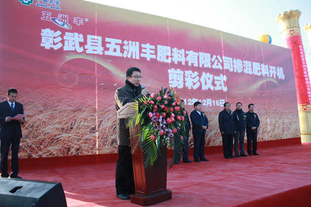 ?? ? 近日,彰武縣五洲豐肥料有限公司(下稱“彰武五洲豐”)竣工投產(chǎn)儀式在廠區(qū)內(nèi)隆重舉行。遼寧省阜新市副市長馬如軍,阜新市彰武縣縣長劉玉學(xué),副縣長常東旭等地方政府領(lǐng)導(dǎo),以及公司總經(jīng)理羅德強(qiáng)、公司實業(yè)管理部經(jīng)理陳永濤,五洲豐農(nóng)業(yè)科技有限公司(下稱“五洲豐”)總經(jīng)理王學(xué)江出席儀式,來自遼寧省阜新市的各地區(qū)優(yōu)秀經(jīng)銷商和各媒體代表共200余人參加儀式。? ? ? ? ?彰武五洲豐為五洲豐于2012年在遼寧省阜新市彰武縣設(shè)立的全資子公司。2012年4月,彰武縣五洲豐正式啟動建設(shè)年設(shè)計生產(chǎn)能力100萬噸的大型化肥生產(chǎn)基地項目,項目計劃總投資1.86億元,占地面積220畝,現(xiàn)已完成3條自動生產(chǎn)線的投資建設(shè),并順利投入運營。? ? ? ? ?作為彰武縣重點扶持項目,彰武五洲豐化肥生產(chǎn)基地的正式投產(chǎn)不僅標(biāo)志著五洲豐區(qū)域性的物流、營銷、生產(chǎn)建設(shè)取得了實質(zhì)成效,同時對區(qū)域農(nóng)資產(chǎn)業(yè)和縣域經(jīng)濟(jì)的發(fā)展也具有巨大的推動作用。