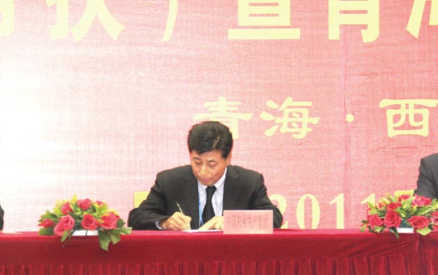 “青洽會(huì)”期間,肖董事長(zhǎng)一行在青海省會(huì)議中心國(guó)際廳出席了對(duì)口援青暨青海與央企合作懇談會(huì)和簽約儀式,并代表中農(nóng)集團(tuán)與青海省政府簽署了《青海省人民政府、中國(guó)農(nóng)業(yè)生產(chǎn)資料集團(tuán)公司投資合作協(xié)議》。